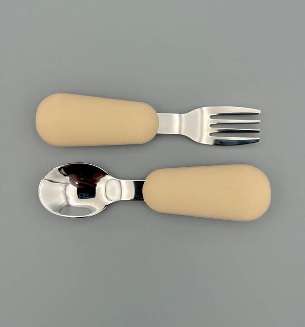 Roestvrijstalen Lepel en Vork met Siliconen Handvat - Beige
